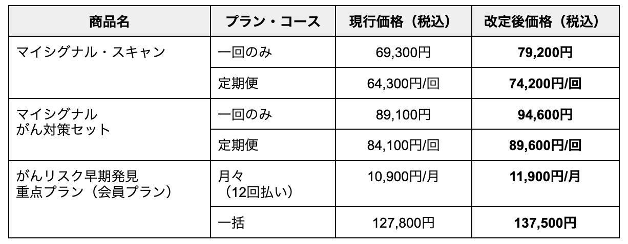 【重要】「マイシグナル®シリーズ」5月1日以降の価格改定に関するお知らせ