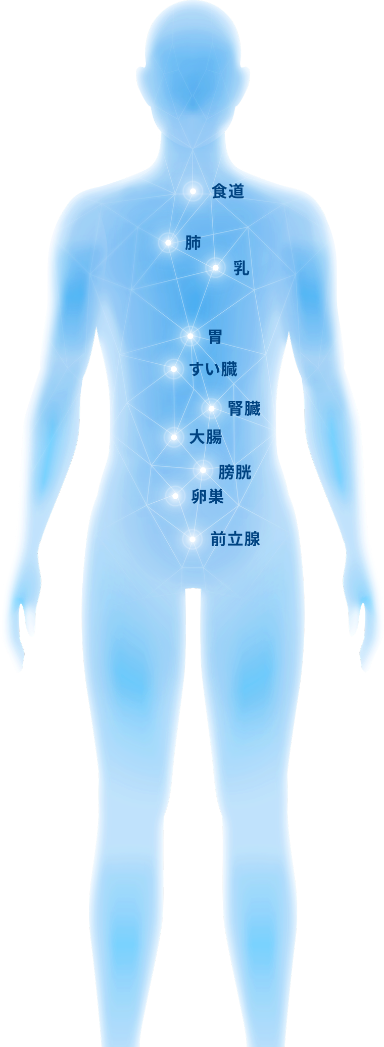 検査できるがんの種類は10種 (すい臓がん、肺がん、胃がん、大腸がん、食道がん、卵巣がん、乳がん、前立腺がん、腎臓がん、膀胱がん)です。卵巣がん・乳がんは女性のみ、前立腺がんは男性のみ検査対象となります。